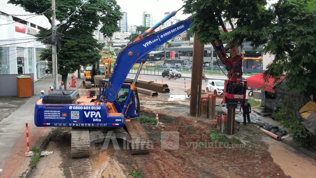 Mesmo diante dessas limitações, a equipe técnica da VPA Infra conseguiu posicionar e cravar as estacas de forma estratégica, garantindo a estabilização da escavação e o controle das deformações do solo.