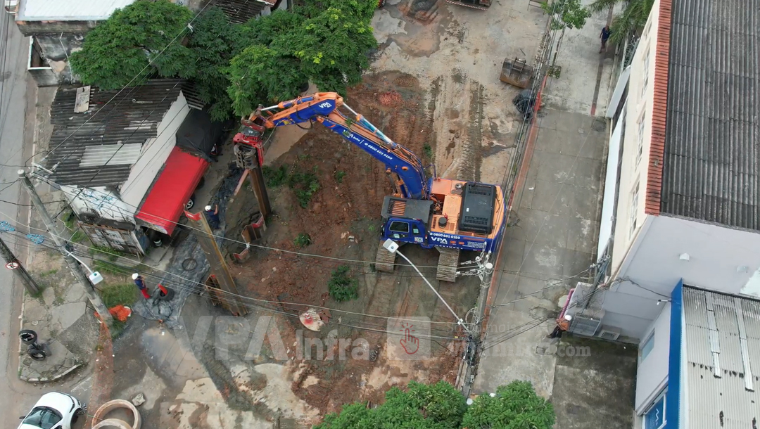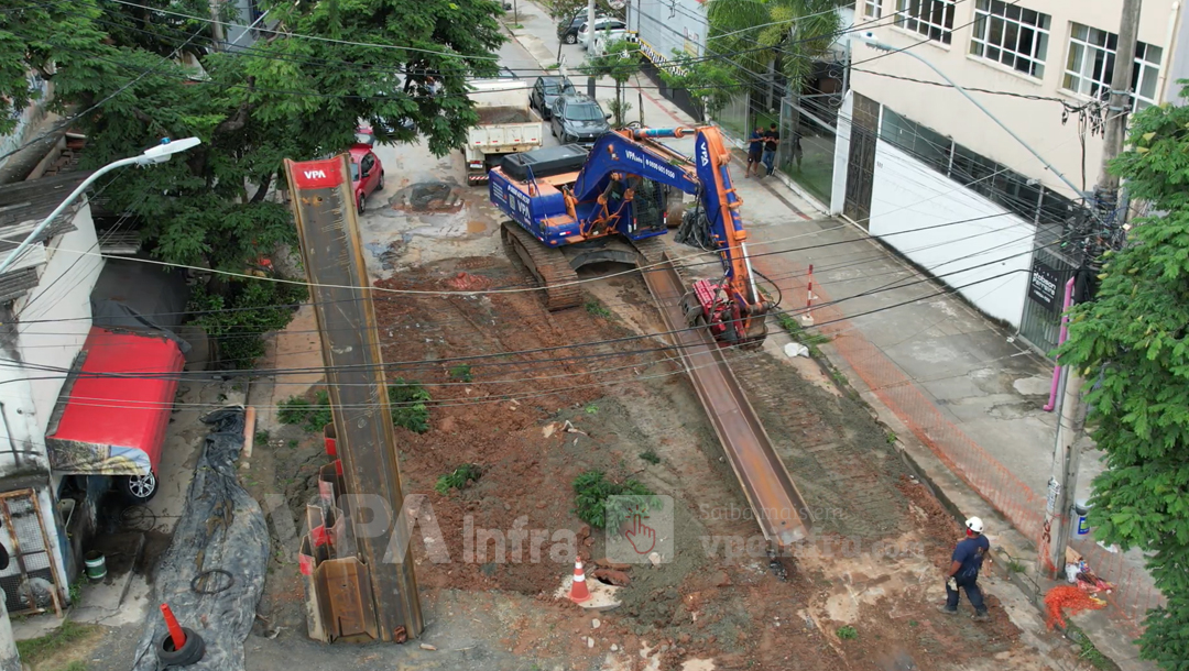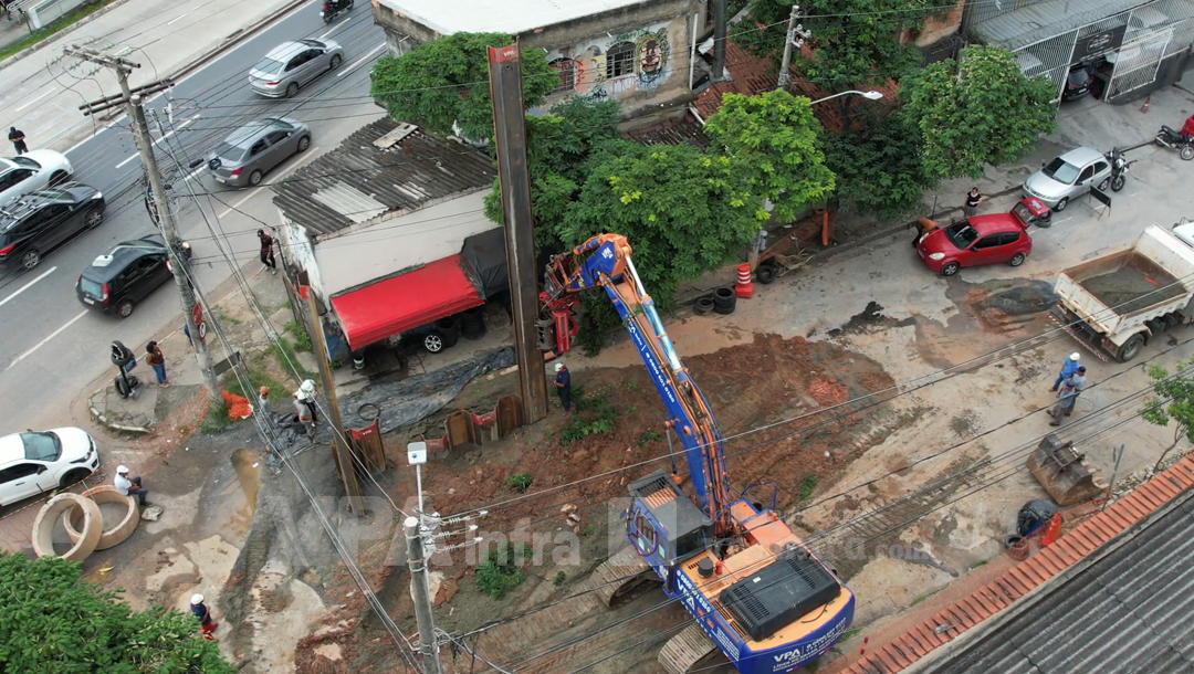 Mesmo diante dessas limitações, a equipe técnica da VPA Infra conseguiu posicionar e cravar as estacas de forma estratégica, garantindo a estabilização da escavação e o controle das deformações do solo.
