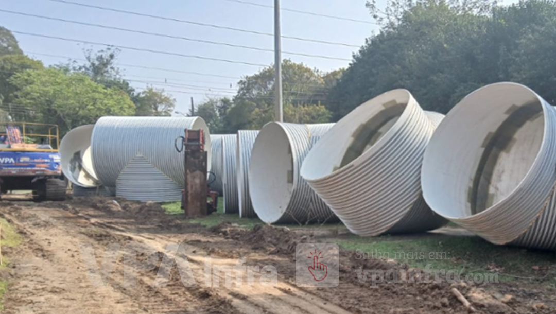 A VPA Infra desempenhou um papel fundamental na execução do projeto, fornecendo estacas pranchas metálicas U8 e realizando o serviço completo de cravação e extração. O moderno Martelo Vibratório MV 35T foi utilizado, o que possibilitou a instalação das estacas com alta precisão e segurança, minimizando impactos e aumentando a produtividade da obra. Paralelamente, a equipe da Dang Construtora foi responsável pela instalação dos tubos de PVC de 3 metros de diâmetro, um trabalho que exigiu coordenação e habilidade devido às dimensões dos materiais e ao espaço de operação.