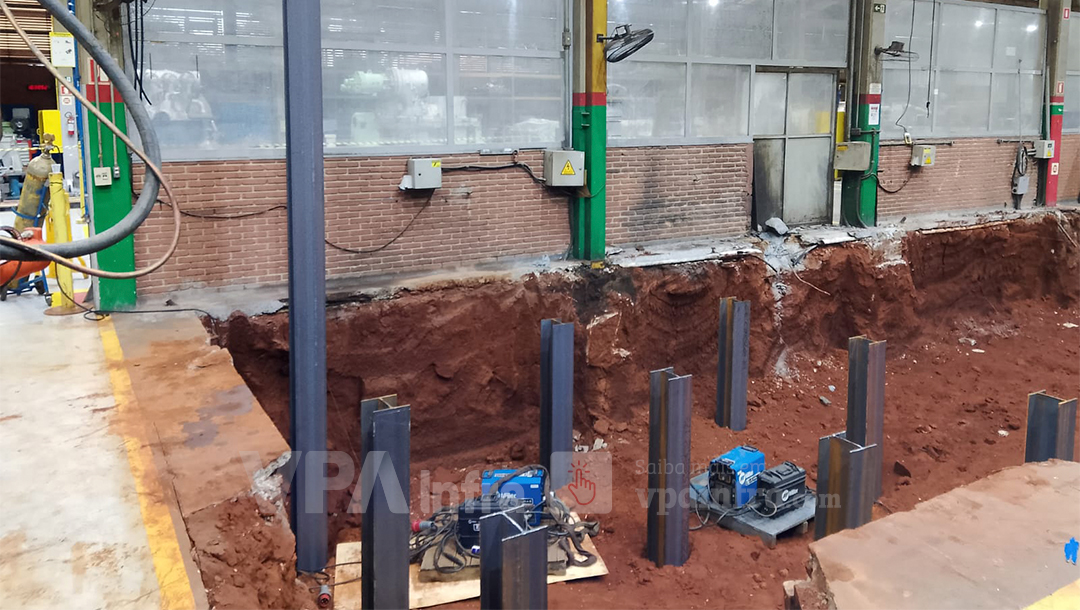 Ao todo, foram cravados 18 perfis, cada um com 8 metros, em uma operação contínua, precisa e sem desvios de segurança. A comunicação entre a equipe da VPA e a equipe técnica da indústria foi fundamental para manter a fluidez das atividades, adequando a execução à rotina diária do galpão.