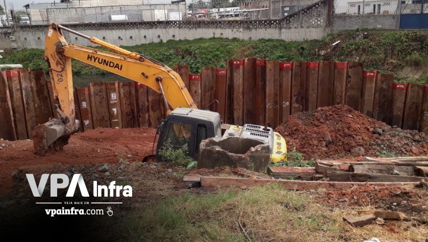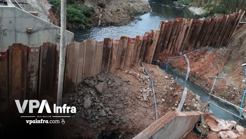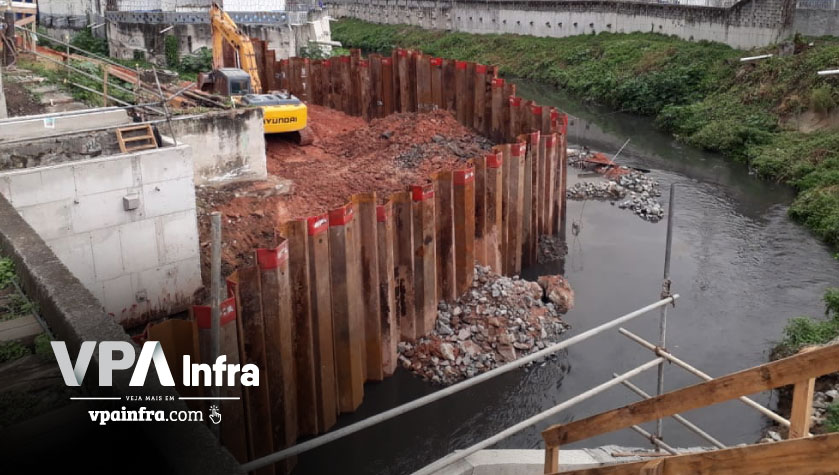 A MRS Logística contratou a Progeo Engenharia para a construção de uma ponte na cidade de São João de Meriti no interior do Rio de Janeiro. O objetivo da obra era expandir e melhorar a eficiência da malha ferroviária da empresa (MRS). Como a ponte seria construída sobre um córrego, estava previsto no pré projeto algum tipo de contenção para execução dos blocos de fundação. A Progeo, que possui grande parceria com a VPA Equipamentos, a convidou para desenvolverem juntas a melhor solução de engenharia para esta obra. Após inúmeras reuniões, visitas técnicas ao local do serviço, estudos geotécnicos e hídricos, chegou-se à conclusão que a melhor solução seria a construção de uma ensecadeira através de estacas prancha. Através desta, seria possível, manter toda a área limpa e seca, sem mencionar na agilidade que daria as outras etapas da obra. Foram cravadas aproximadamente 300 estacas prancha entre 8,00 e 10,00 metros de comprimento. O serviço de cravação, que foi efetuado em duas etapas, um em cada margem do rio, foi executado com o martelo vibratório acoplado em escavadeira hidráulica. A grande complexidade da obra, foi cravar as estacas debaixo de uma ponte existente. Nesse momento, devido a altura útil disponível ser de 5,00 metros, as estacas foram cortadas em módulos de 3,00 metros e soldadas posteriormente até atingir o comprimento previsto em projeto. Isso só foi possível, graças ao modelo de martelo vibratório definido anteriormente, sem contar ainda com a grande mobilidade que a escavadeira nos permite.
