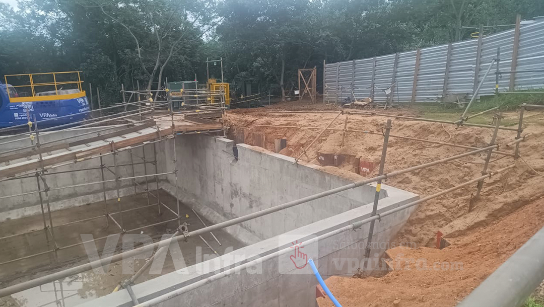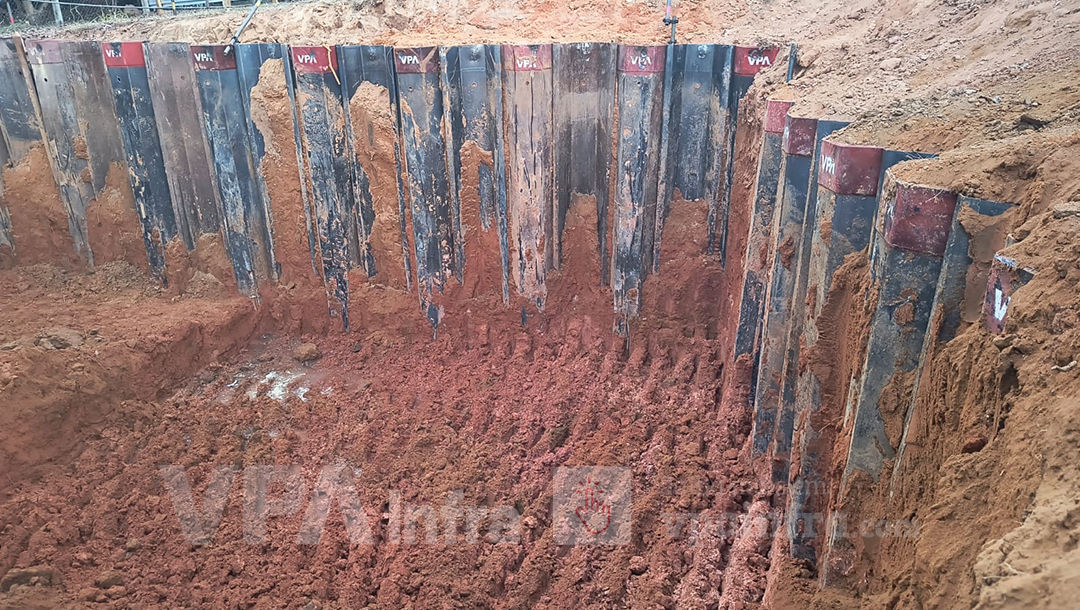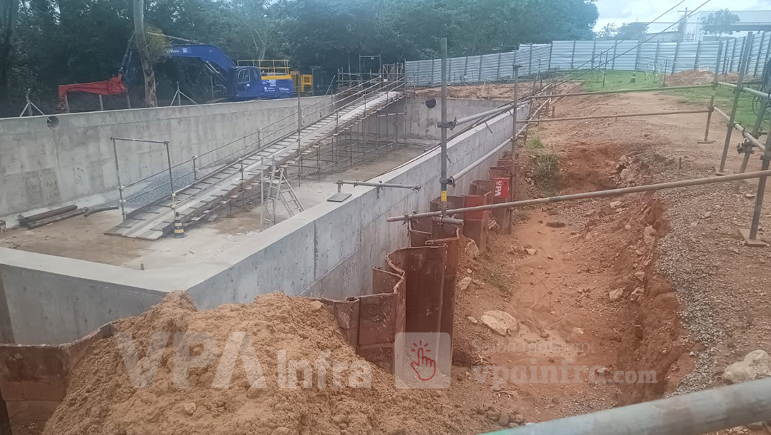 Para atender a esse desafio, a VPA Infra foi acionada para fornecer estacas prancha de 10 m de comprimento para escorar a escavação. A VPA não apenas forneceu as estacas, mas também foi responsável pela cravação, utilizando um martelo vibratório moderno com capacidade de giro de 360 graus. Esse equipamento foi decisivo para a segurança do processo, pois eleva automaticamente a estaca do chão e elimina a necessidade de intervenção humana direta, reduzindo significativamente os riscos durante a operação. A tecnologia aplicada garantiu que a cravação fosse precisa e eficiente, preservando a estabilidade do solo durante todo o projeto, além de fazer o processo de cravação de maneira mais rápida e eficiente.